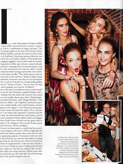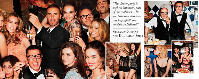 We Love “Dinner with Dolce & Gabbana” By Terry Richardson For Harper’s Bazaar US April 2012 April 10, 2012 – Posted in: 2012, Amber le Bon, Andrew Richardson, Andy Hillman, Cara Delevigne, Domenico Dolce, Eliza Dolittle, Florence Brundell Bruce, Gary Barlow, Harper's Bazaar U.S.A Magazine, Harpers Bazaar Magazine U.k, Isaac Ferry, Johnnie Sapong, Lucia Pica, Malcom Edwards, Mary Charteris, Oliver Cohen Jackson, Otis Ferry, Set Designers, Stefano Gabbana, Tali Tennox, Tara Ferry, Terry Richardson – Tags: Dolce & Gabbana, Editorial, Hair Assistant, Hair Stylists, Make Up Artists, Photographers, Print Magazines, Stylists / Fashion Editors