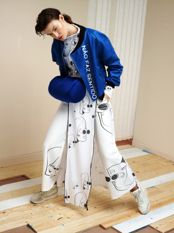 KDI’s debut collection was shown through the Bloom Lab platform for emerging new designers at Portugal Fashion Week AW16. The brand is all about collaboration and synergy, inspired by the relationship between head designers Inês Gonçalves and Diana Quintal and the ‘Cadaver Exquis’ concept of two languages joining together to form a single vision. The streetwear aesthetic and the interchangeability of the pieces is key to a dynamic collection.